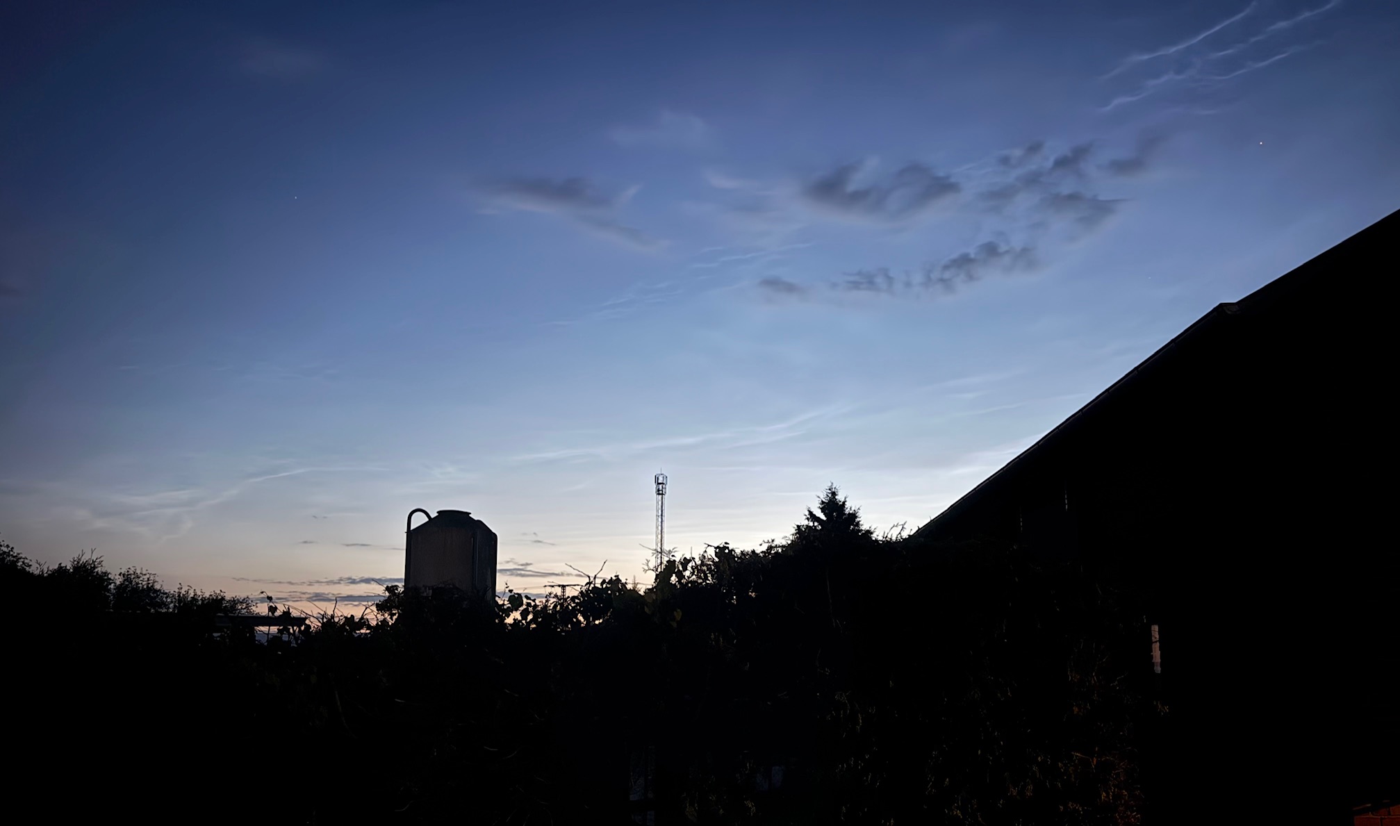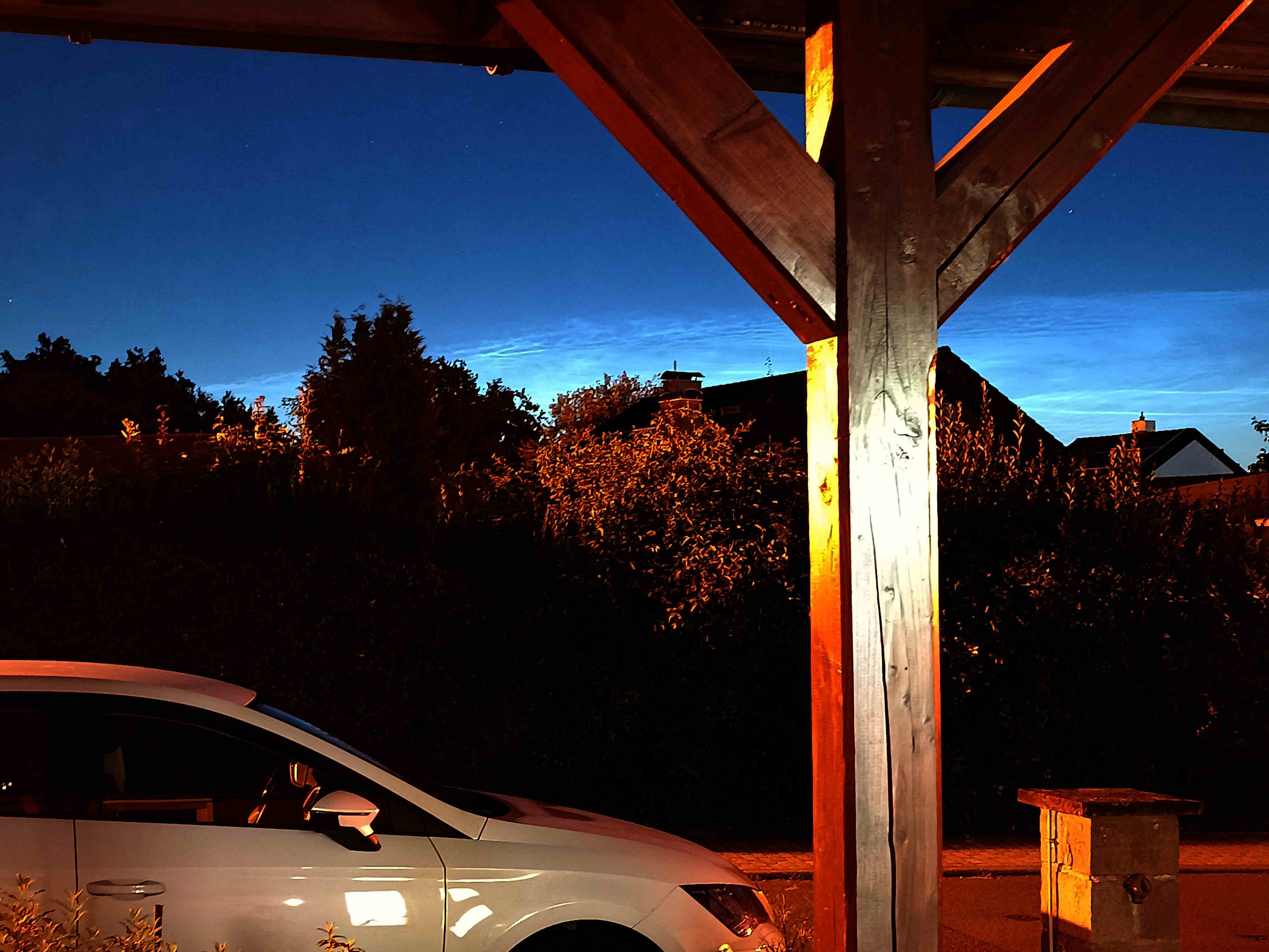 bei einer Schlafunterbrechung heute morgen aus dem Fenster geschaut. Nicht die beste Horizontsicht. Trotzdem konnte ich eindeutig NLC ausmachen. Leider keine gute Aufnahme, da mit Smartphone aus der Hand erstellt.
