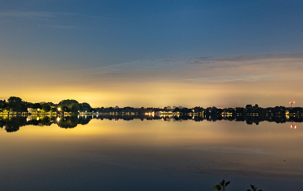 Da in Hemmingstedt die Bewölkung durchgängig die Sicht in den Himmel verhinderte, war ich überrascht als kurz nach 3 Uhr durch das Fenster Mondlicht zu sehen war. Im Garten waren NLC deutlich zu sehen. Bis sich die Wolkendecke wieder zuzog gelangen mir ca. eine viertel Stunde Aufnahmen.