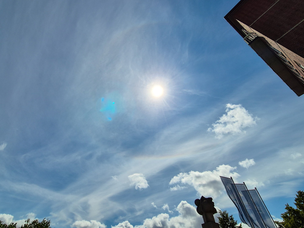 Am 09.07. zeigten sich am Nachmittag Fragmente von 22°-Ring und umschriebenen Halo in Hamburg: