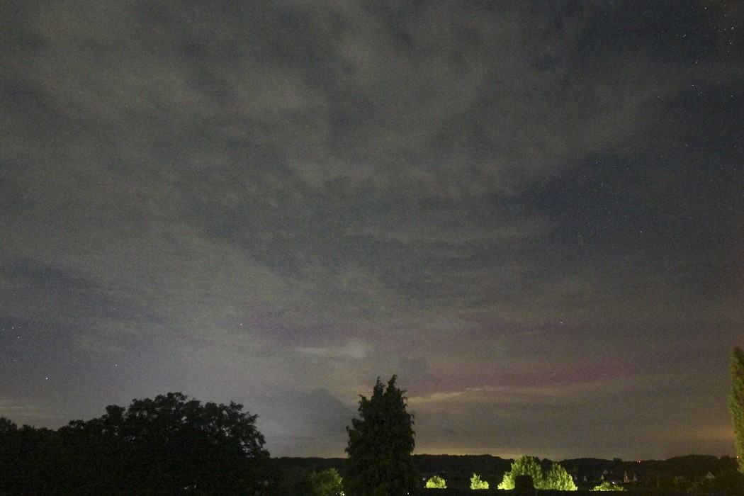 Gegen 21:05 UTC schwach visuell mit Beamern, danach bis zur Dämmerung immer mal wieder fotografisch in Form eines leicht rötlich gefärbten Horizonts.