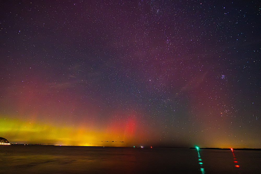 Travemünde an der Ostsee auch deutlich visueller grüner Bogen. Darüber fotografisch rot. Bilder und weitere Infos folgen dann später.