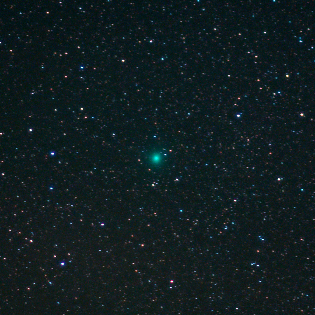 gestern Abend (22.10.2025) klarte es über Duisburg überraschend auf und es gelang mir zwischen 18:30 UTC und 19:20 UTC den Kometen C/2025 R2 (SWAN) zu fotografieren. Es ist ein Stack aus 200 Bildern a 2s bei ISO 1600 mit Kalibrierbildern. Kamera ist eine Canon 600Da an Walimex Festbrennweite 50mm. Das Bild ist gecroppt.
