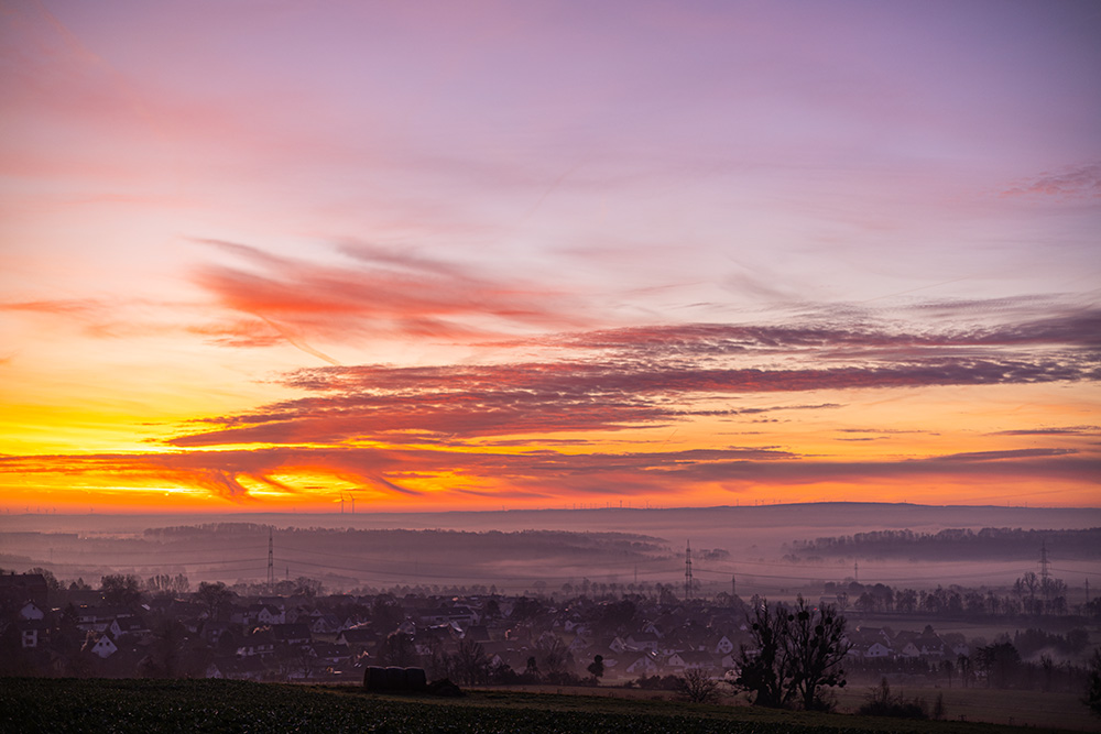 Am heutigen vierten Advent gab es in Kirchhain wieder ein Morgenrot, wenn auch nicht ganz so kräftig wie zuletzt: