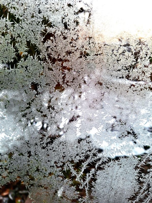 Nachdem ich Anettes wunderschöne Fotos gesehen hatte, schlief ich ein. Ich träumte von Schnee und Eisblumen. Ich wachte auf und rannte zum Fenster, um zu sehen, ob ich geträumt hatte oder nicht. Draußen war der Himmel klar und wolkenlos. Heute sind es bei mir 17 Grad Celsius.