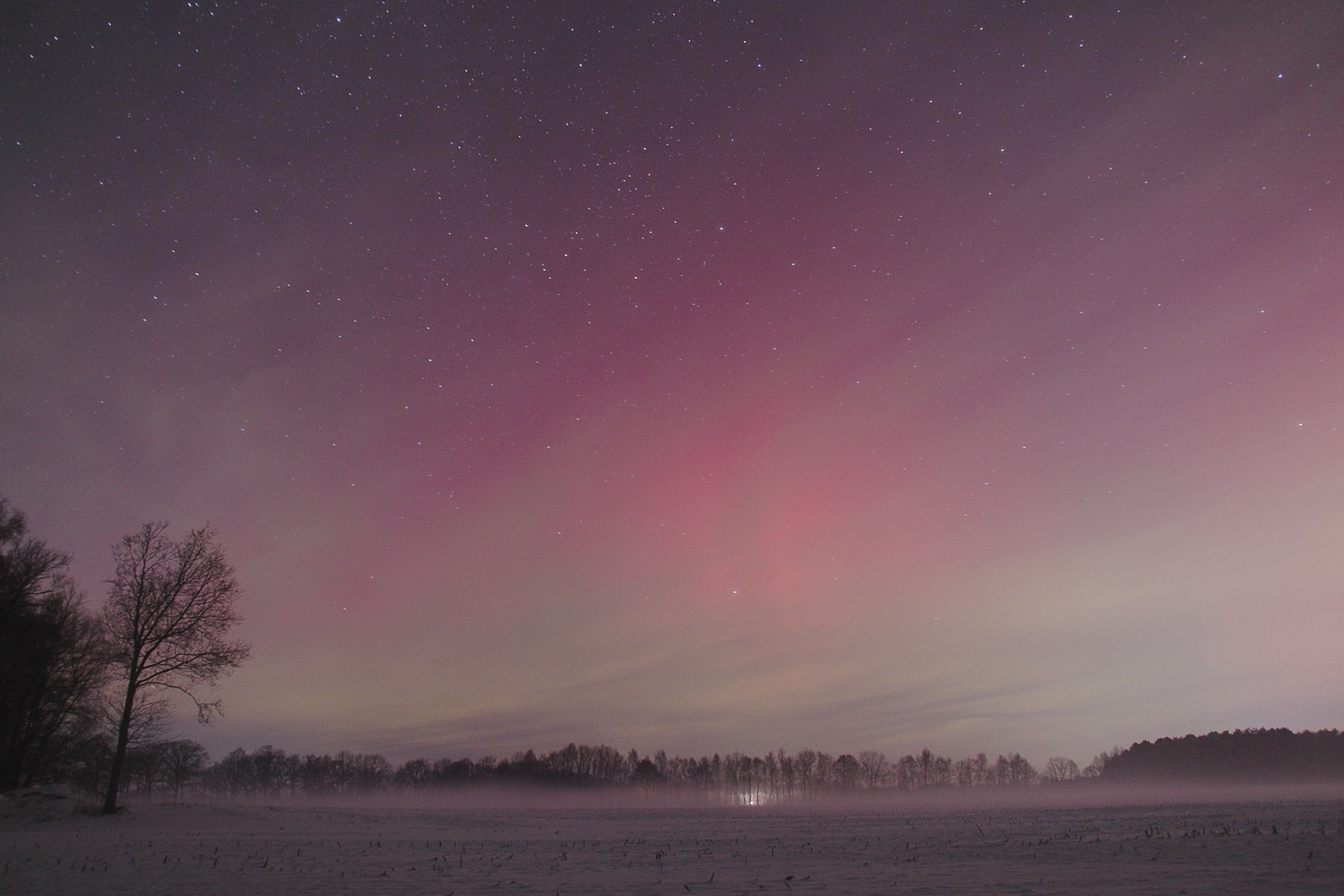 Anfangs nur fotografisch, später deutlich visuelles Polarlicht. Der grüne Polarlichtbogen war durch reichlich Cs fib kaum sichtbar. Zur Zeit der Aufnahme kam aber das Grün deutlich durch. Rot war nur blass.