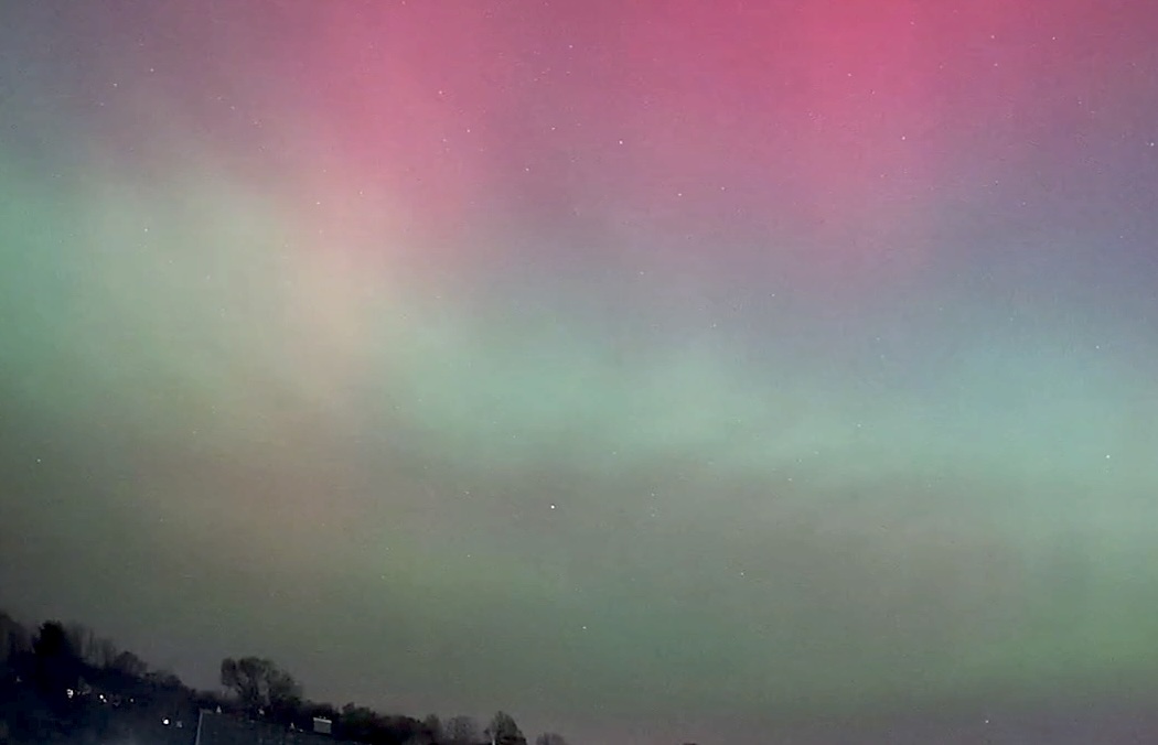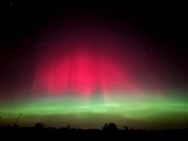 Auch aus Büdelsdorf kann ich ein Polarlicht-Spektakel melden: Alles dabei, vom Grünen Bogen bis rotem Pulsieren, Beamer, Ragda und SAR-Bogen, das ganze deutlich über den Zenit hinaus bis in den Südhimmel. In dieser Ausprägung hatte ich das hier noch nie gesehen, nicht mal bei dem Event im Mai 2024.