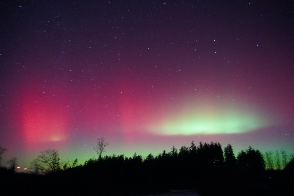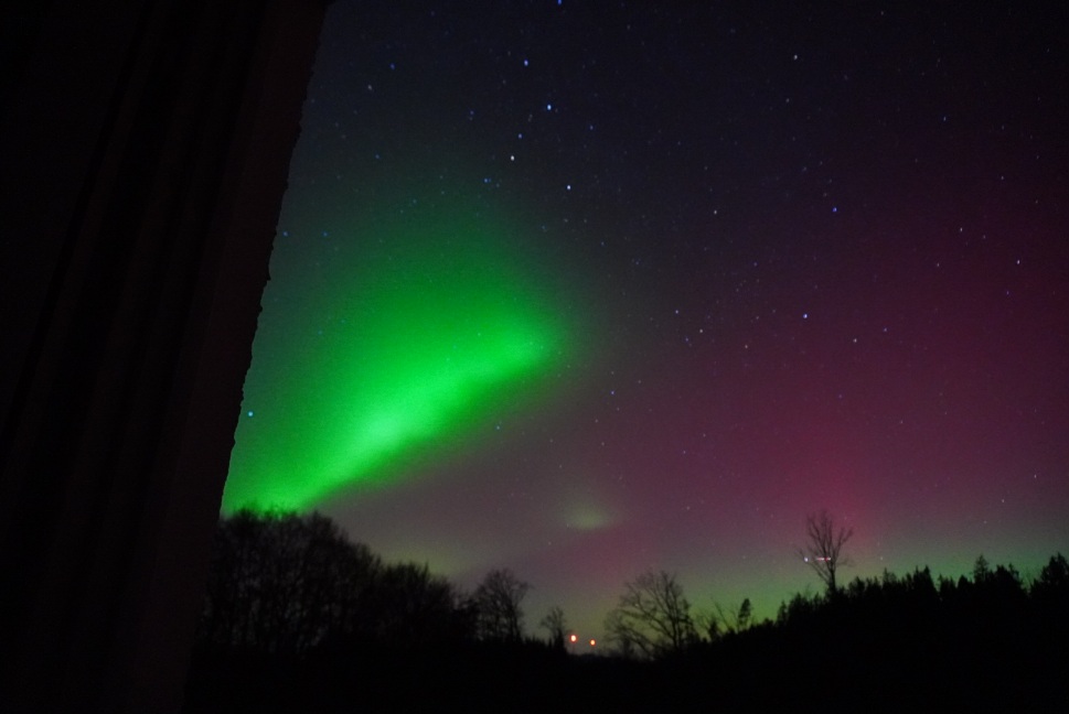 Kurze Sichtkontrollen zeigten die Aurora Borealis weit im Nordosten/Osten und im Westen bis zum Südwesten. Die oft berichteten hellgrünen Flecken/Wolken, die oft nur kurz wie pulsierend auftraten, habe ich verpasst.