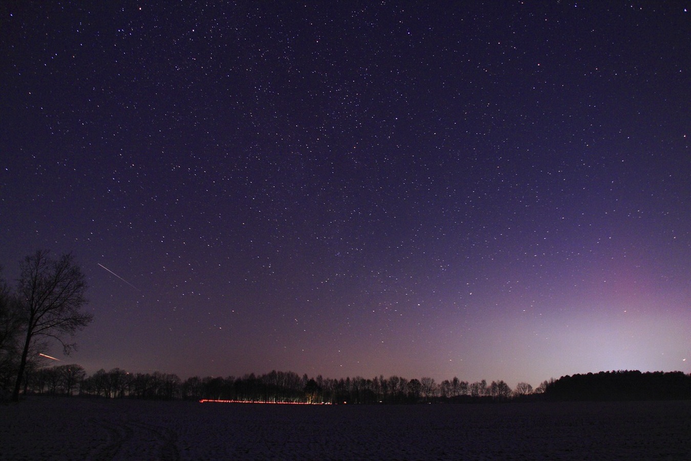 Kommentar: Polarlicht mit schwachen grünem Bogen sowie violette Strahlen/Flächen
