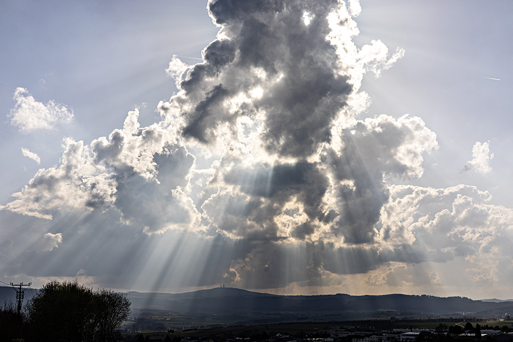 Am heutigen 10.03. konnte ich bei Wehrheim im Taunus ordentliche Schattenstrahlen aufnehmen: