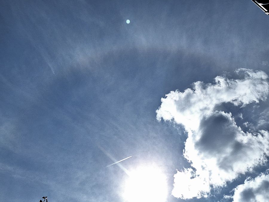 Heute gab es einen recht gut erkennbaren 22° Ring und eine Nebensonne.