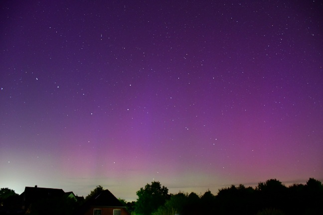 ich hatte nachts die Kamera draußen laufen wegen Perseiden. Helles fotografisches Polarlicht von 00:45-02:00 MESZ. Hätte auch für visuell gereicht, musste aber schlafen.