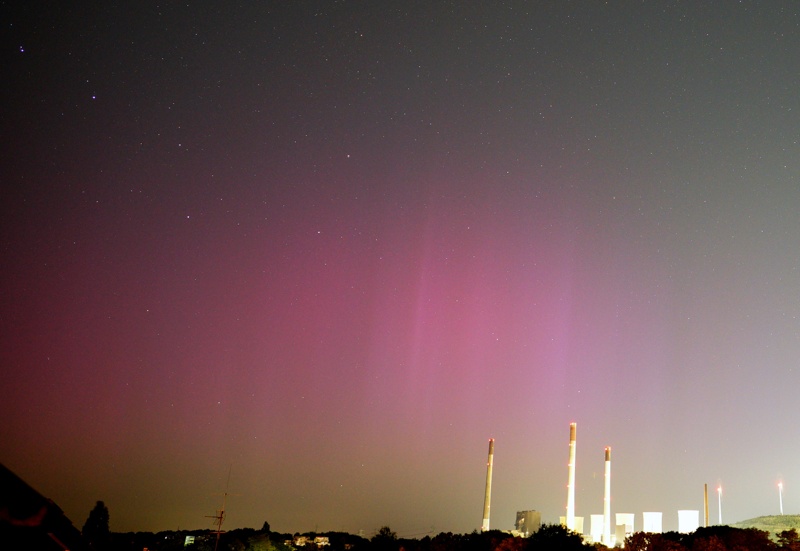 Im Burgkunstadt gab es auch Polarlicht. Eigentlich bin ich wegen der Perseiden mal rausgefahren um zu schauen was so los ist. Ab 23 Uhr war es durchgehend auf dem Display leicht rötlich am Horizont. Hab dann weiter nach den Perseiden ausschau gehalten. Irgendwann hab ich dann mal wieder in Richtung Nordwesten fotografiert und prompt ging es gegen 01:05 MESZ nach ein paar Fotos ohne Polarlicht auch gleich los mit schwachen Beamern. Diese wurden schnell heller und man konnte sie als weiße Strahlen eindeutig gut erkennen. Im weiteren Verlauf sind sie dann weiter nach Norden gewandert und haben sich immer mehr abgeschwächt. Bis 02:30 war weiter fotografisches Polarlicht zu sehen. Danach hab ich abgebaut und bin nach Hause.