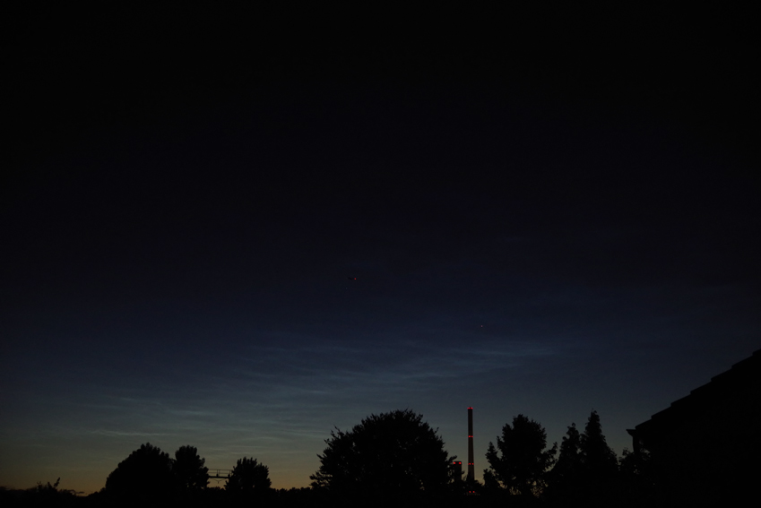 nachdem ich gestern die NLC-Bilder der Nacht und die von den durchziehenden Gewitterwolken ausgelesen, grob durchgeschaut und einzelne bearbeitet hatte, erblickte ich beim Zubettgehen quasi schon wieder silbrig blaue Schleier über dem abziehenden dunklen Gewölk.