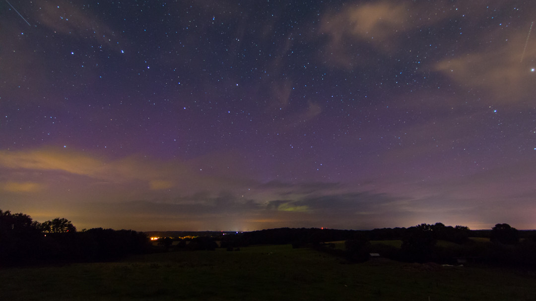 Hier mein bescheidenes "Beiweisfoto" mit der größten nicht durch Wolken verdeckten Helligkeit um 1:22 Uhr: