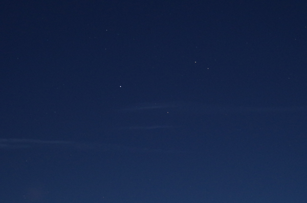 als ich gestern auf dem Balkon saß und auf zwei Iridium-Flares gewartet habe, ist mir am sonst klaren Himmel eine verdächtige Wolkenformation aufgefallen (Bild um 23:18):