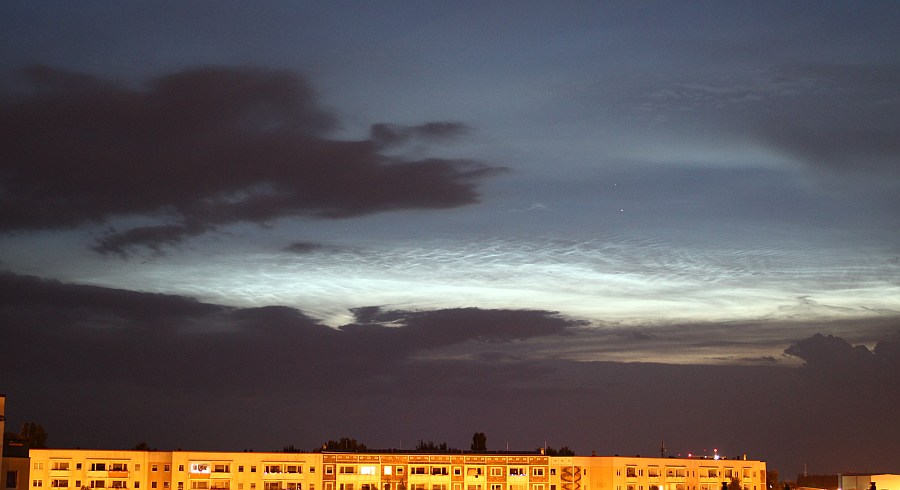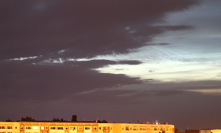 Die Helligkeit auf den Bildern sollte man nicht überbewerten, da die NLC aufgrund der vielen dunklen Wolken drumherum überbelichtet sind.