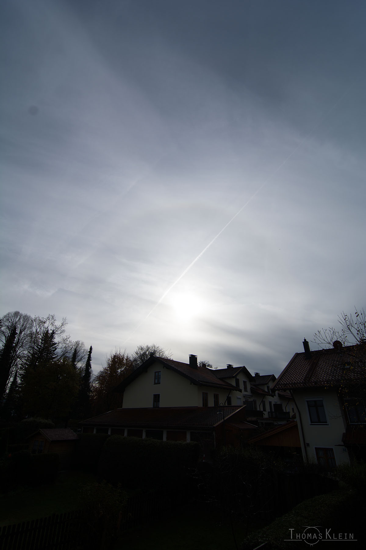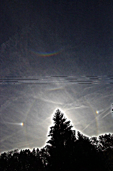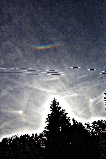Danach verschwanden die meisten Halos, der ZZB hielt sich noch länger und auch die Nebensonnen waren noch bis in den Nachmittag hinein sichtbar, als dichtere Wolken hereinzogen. Um 13:20 hab ich noch eine linke 120°-Nebensonne gesehen, ohne Horizontalkreis als isolierten weißen Fleck. Bevor ich meine Kamera zur Hand hatte, war sie aber schon weg.