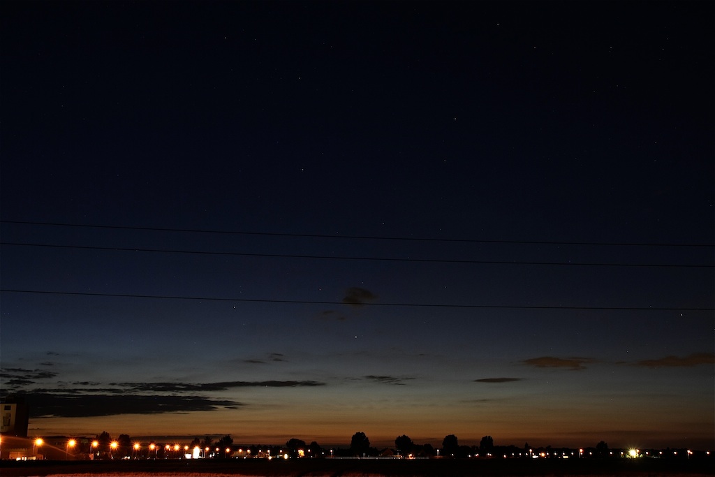 Hier auf ca. 330 Grad Azimut und bis 5 Grad Höhe schwache NLCs, gerade so visuell zu erkennen, allerdings nur fotografisch eindeutig.
