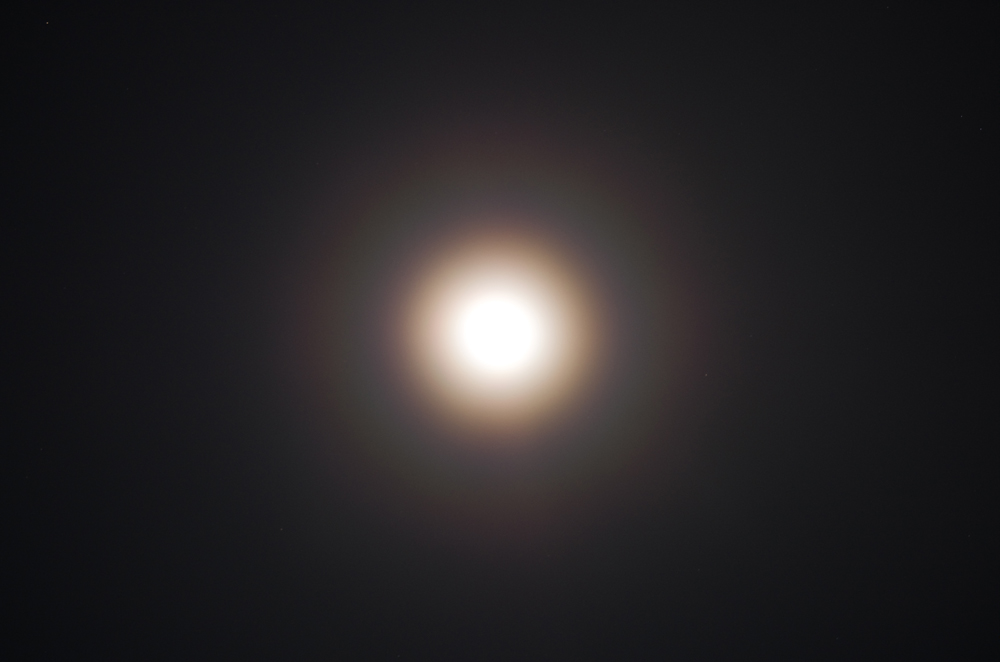 Nachts um den hochstehenden Mond war nur eine sehr schwache Korona zu erkennen, kein Vergleich zum Nachmittag. Sonntags dann auch wegen Cirren wieder keine guten Beobachtungsmöglichkeiten, oder eben keine hinreichend starke Pollenkorona.
