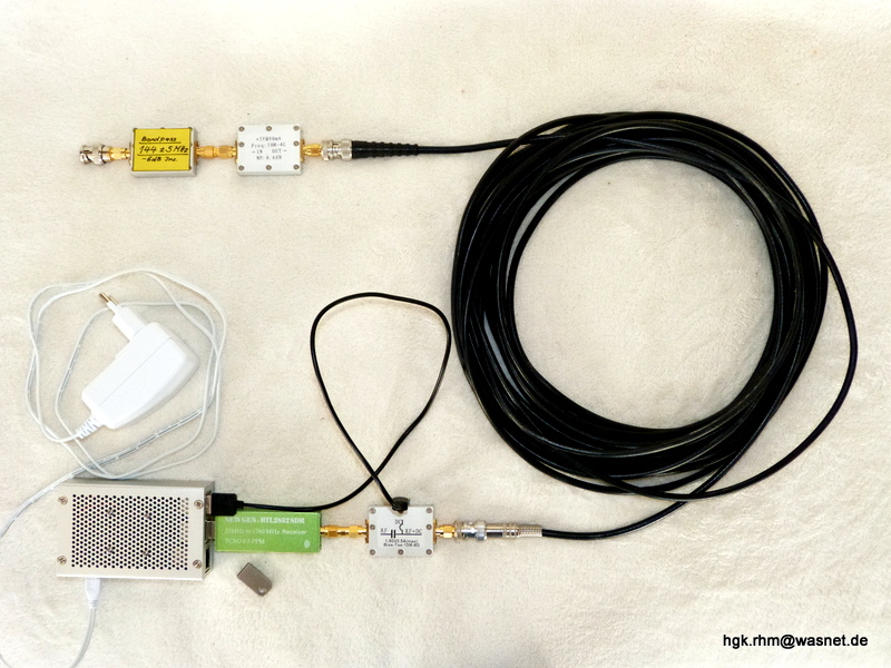 Danke für die Info, und den Abbildungen zum recht interessanten Aufbau ....> 'home brewed' Bandpass, einem Breitbandverstärker, Bias-T und dem China-Receiver, kommt das Signal dann in die Himbeere (ARCH Linux).....
