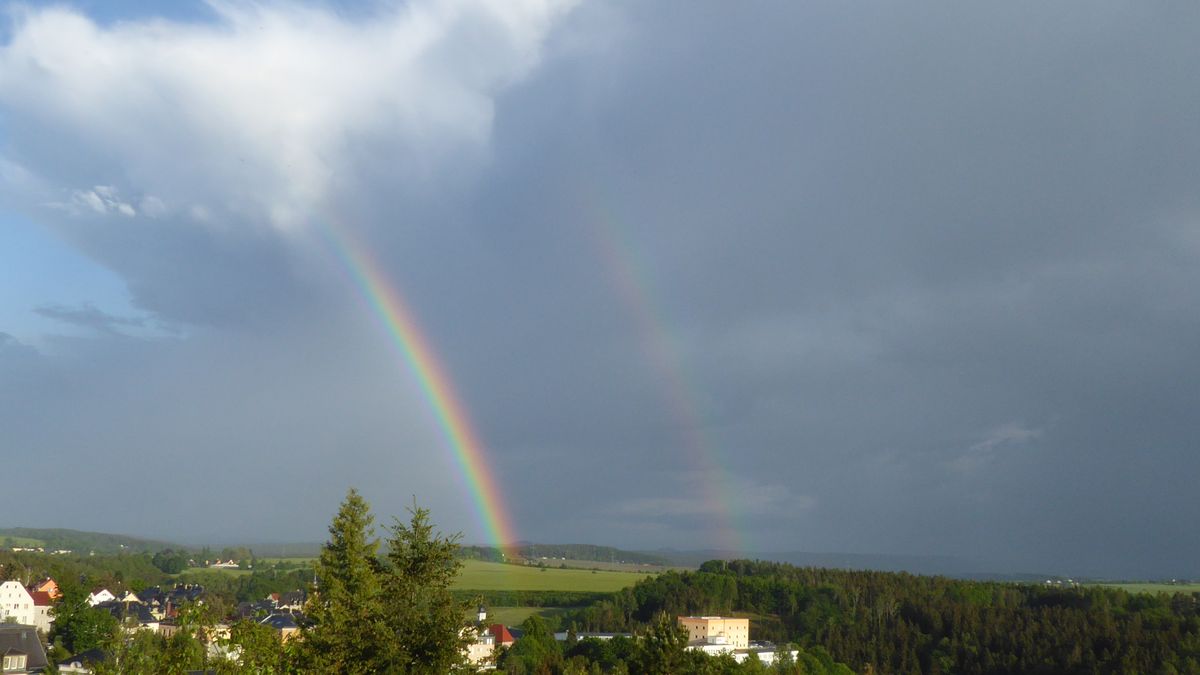 vom 2. Juni ein intensiver Doppel-Regenbogen mit Interferenzen. Grüße
