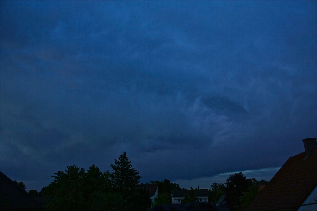 hier noch ein Nachtrag von Gestern, es gab reichlich fotografische Ausbeute. In der Nachbargemeinde fegte wohl gegen 16h MESZ ein F2 in die Ortschaft und deckte mehrere Häuser ab oder schlug eine Schneise in eine Baumreihe, die allesamt umgesäbelt wurden. Ich konnte ungefähr um diese Zeit aus meinem Wohnzimmerfenster in diese Richtung ein Foto machen, die Trombe habe ich nicht erwischt. Es gab auch ordentlich Hagelschlag. Auf einem Bild habe ich einen merkwürdigen Blitz eingekreist. Abends zeigte sich ein doppelter Regenbogen und im Osten ein sich auflösender CB.
