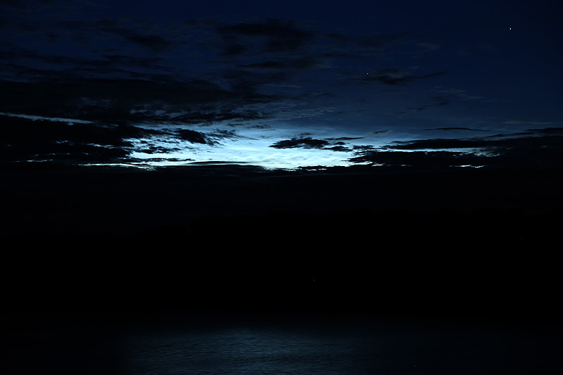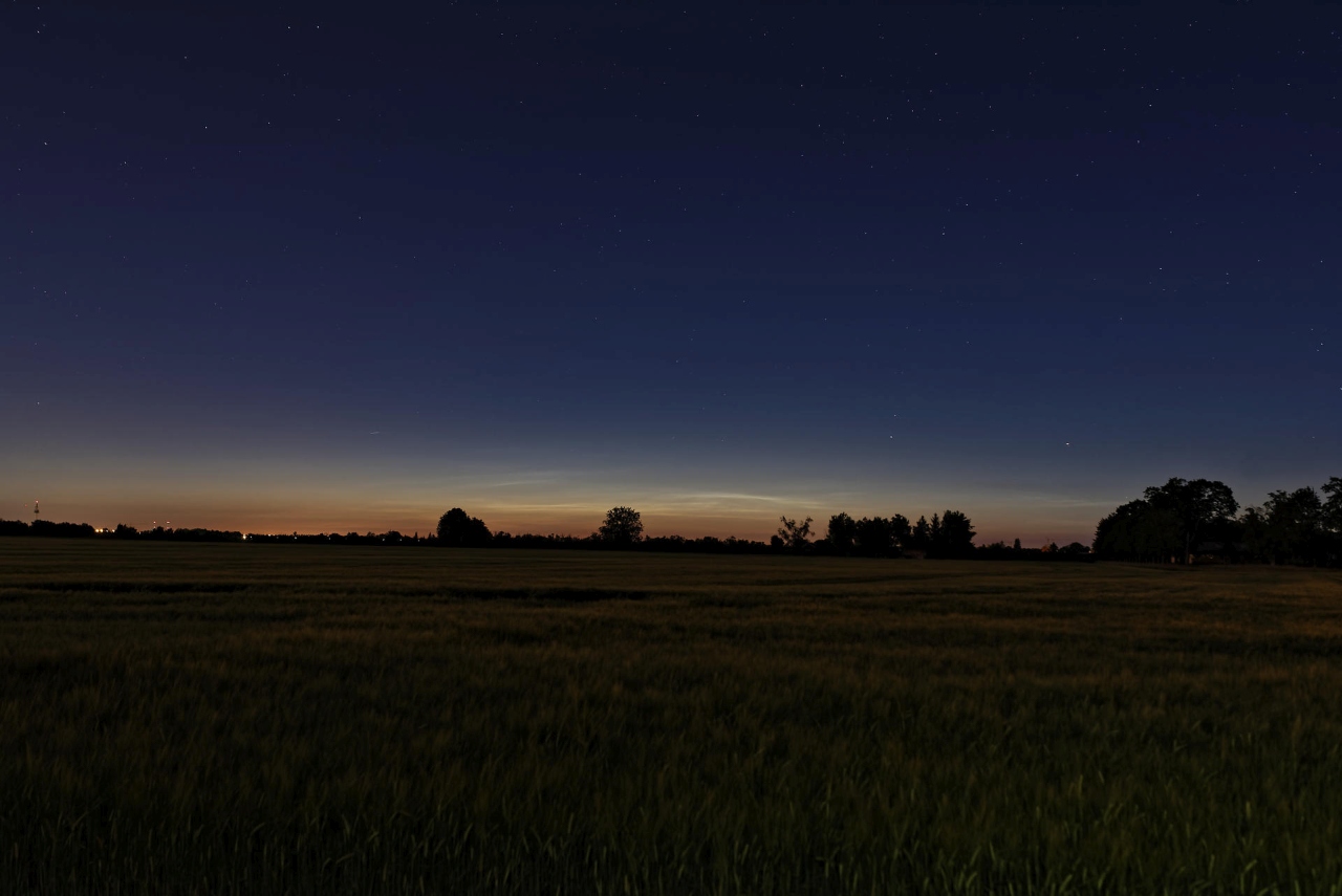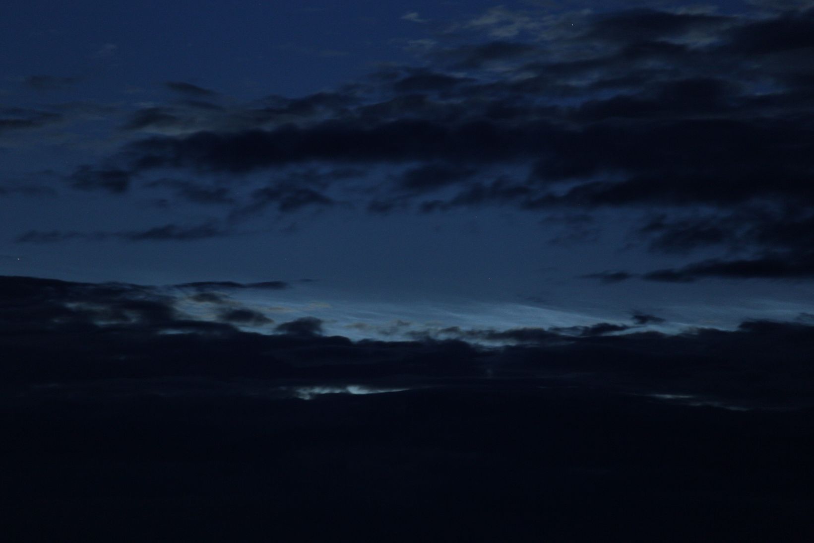 Es gab ein kleines ca. 8° hohes NLC Feld im Norden. Helligkeit 2 gegen 23:25 Uhr nur noch fotografisch.