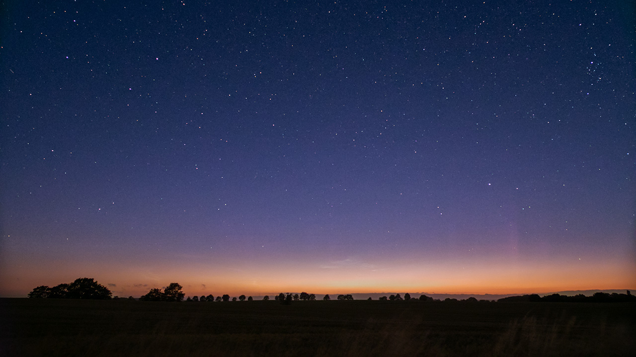 Wegen der sehr vielversprechenden Sonnenwindbedingungen war ich ab kurz vor 1:00 MESZ in der Nähe von Curau bei Lübeck und nahm einen Zeitraffer auf. Während der Belichtung bemerkte ich nichts auffälliges in den Bildern und brach die Serie um 2:05 MESZ ab (leider). Erst nach dem Hinweis von StefanK auf den Nachweis von Laura, sah ich mir die Bilder an und bearbeitete sie. Das Polarlicht war dann recht problemlos sichtbar - sogar inklusive NLC!
