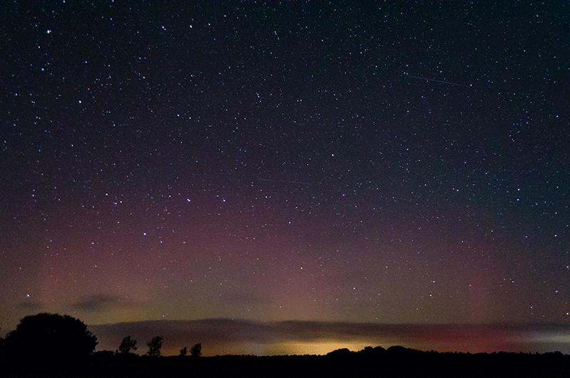 Wegen aufziehender Wolken machte ich mich auf den Rückweg (01:40 MESZ), machte aber noch einen Stopp bei Lübeck in der Nähe von Curau (02:20-02:53 MESZ). Dort war noch schwache Strahlenaktivität fotografisch festzuhalten.