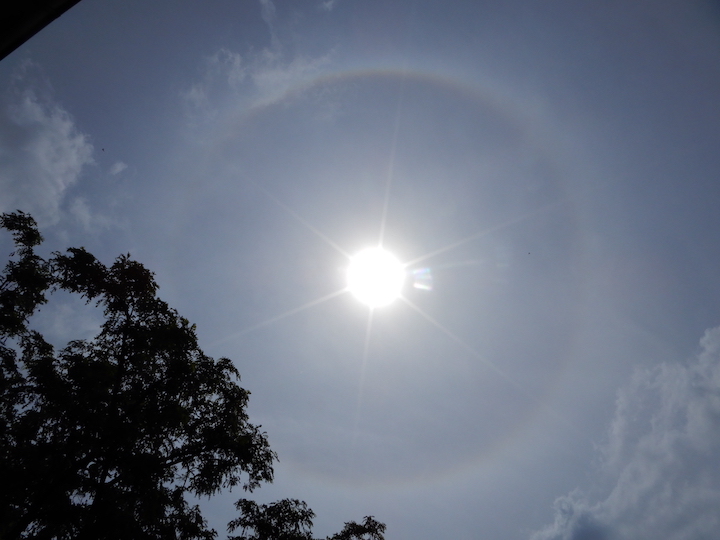 vorhin gab es längere Zeit einen Regenbogen ohne Regen, der allmählig ins Rot überging.