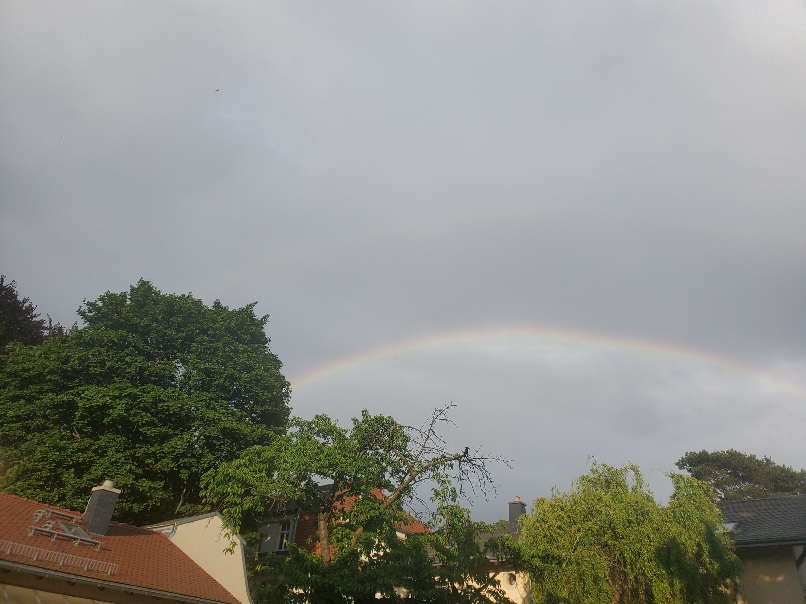 Ich kann nur Bilder eines 'normalen" Regenbogens- wenn auch eines schönen- von gestern Abend (30.05.24) in Tröndel beisteuern (s.u.)