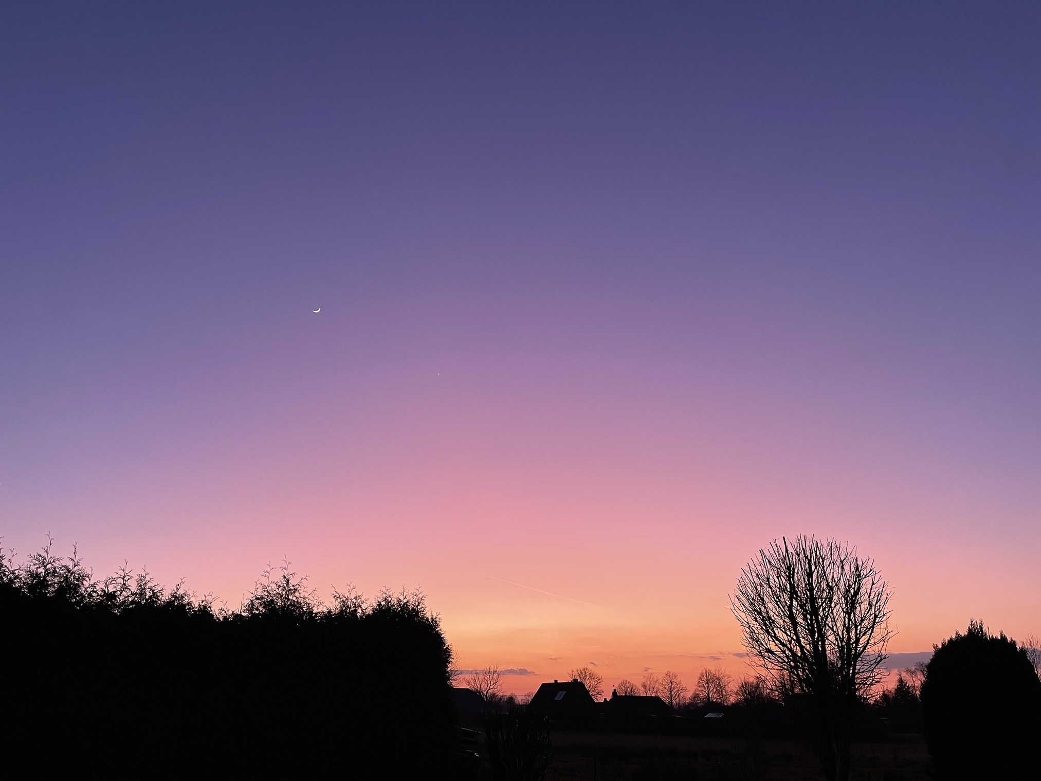 Anbei ein Foto vom gestrigen Abend, 02.03.2025. Ein sehr schönes Abend-Lila ( Purpurlicht?).