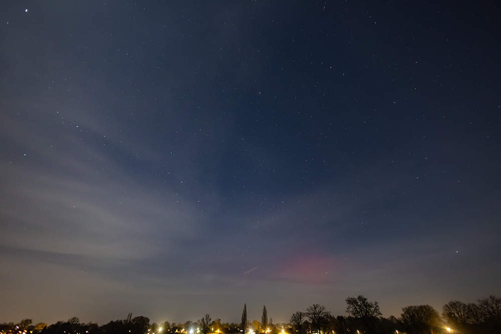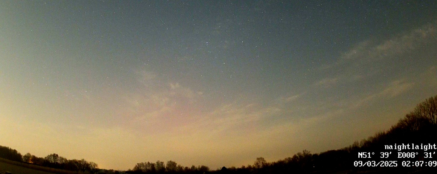 Schwache rote Beamer und leichter grüner Bogen ab 22:30 MEZ auf meiner WebCam zu sehen. (Verfällt um 00:00 Uhr MEZ)