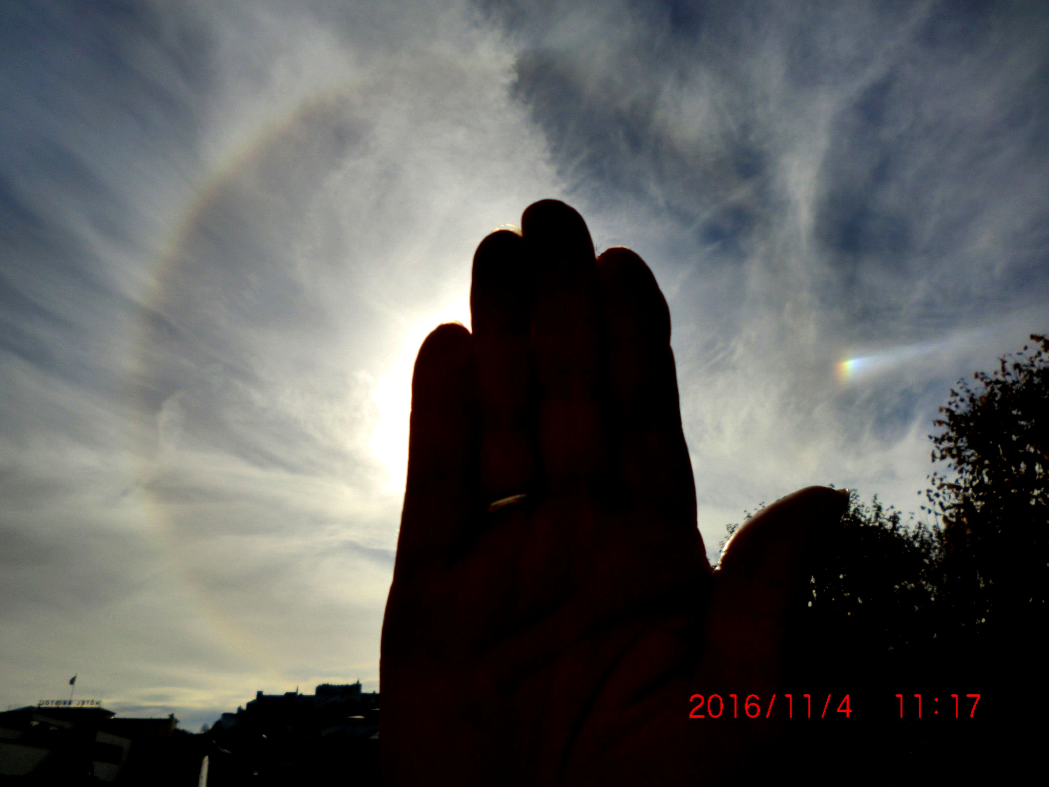 Gestern (4.11.) war ca. eine halbe Stunde lang über Salzburg dieses Halo mit rechter Nebensonne zu beobachten