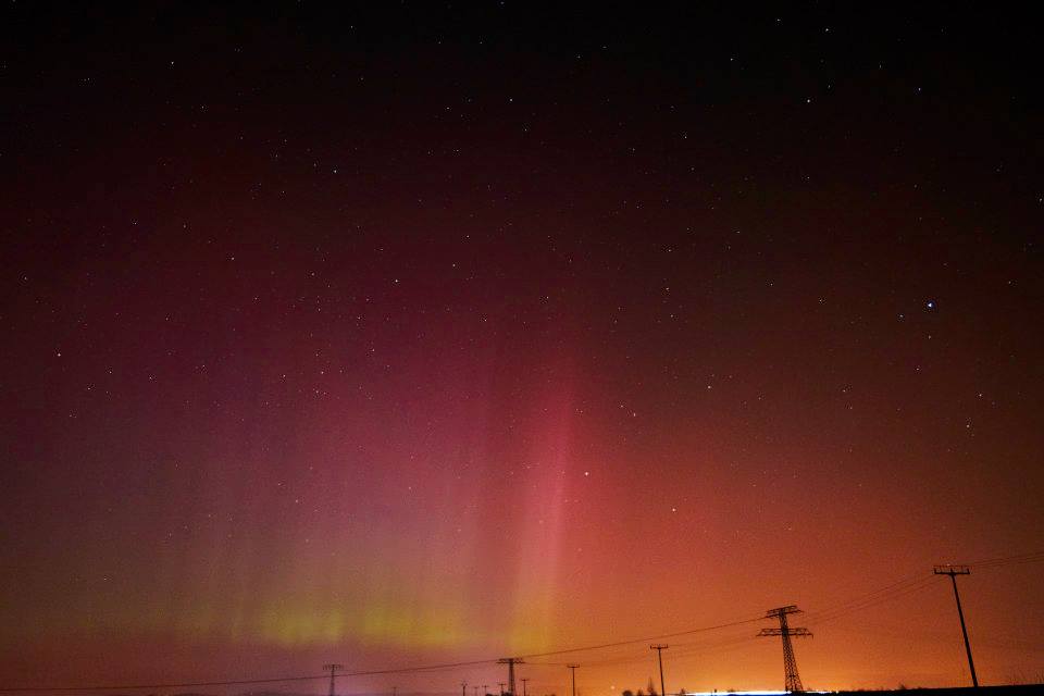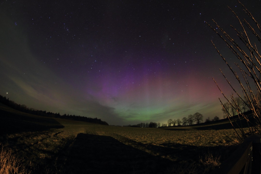 auch hier bei Würzburg fotografisches Polarlicht. Sterne wegen Dunst erst ab 30 Grad sichtbar, deshalb keine Chance auf visuelle Beobachtung.