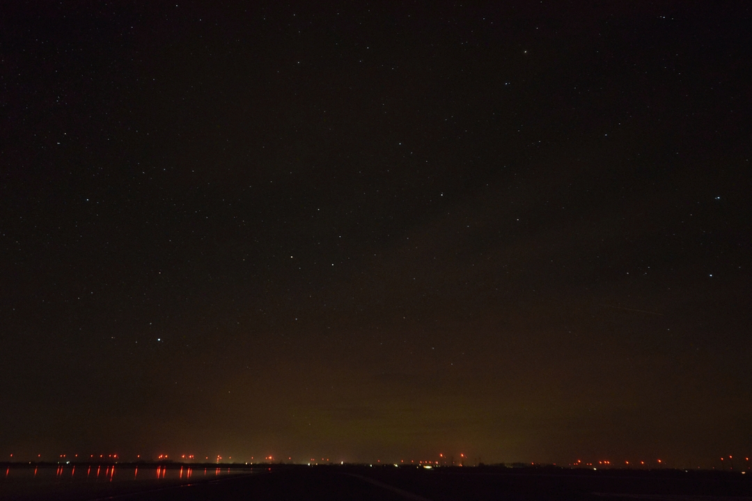 Leider zogen gerade hier immer wieder Wolkenschleier durch. Dies sind noch besten Fotos. Der Rot-Anteil entsteht durch die Warrnleuchten der vielen Windkraftanlagen.