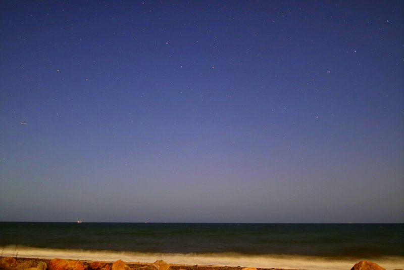 Erst nachdem ich die Bilder stark bearbeitet und zu einem kurzen Zeitraffer zusammen gefügt habe, sehe ich auch den störenden horizontnahen Dunst: