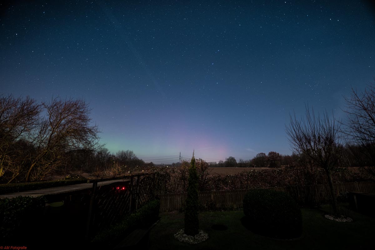 (Süderlügum 54° 52´19″ N/8° 54´45″ O) in der Zeit von 23 - 00.30 Uhr MEZ fotografisches Polarlicht aufzeichnen.