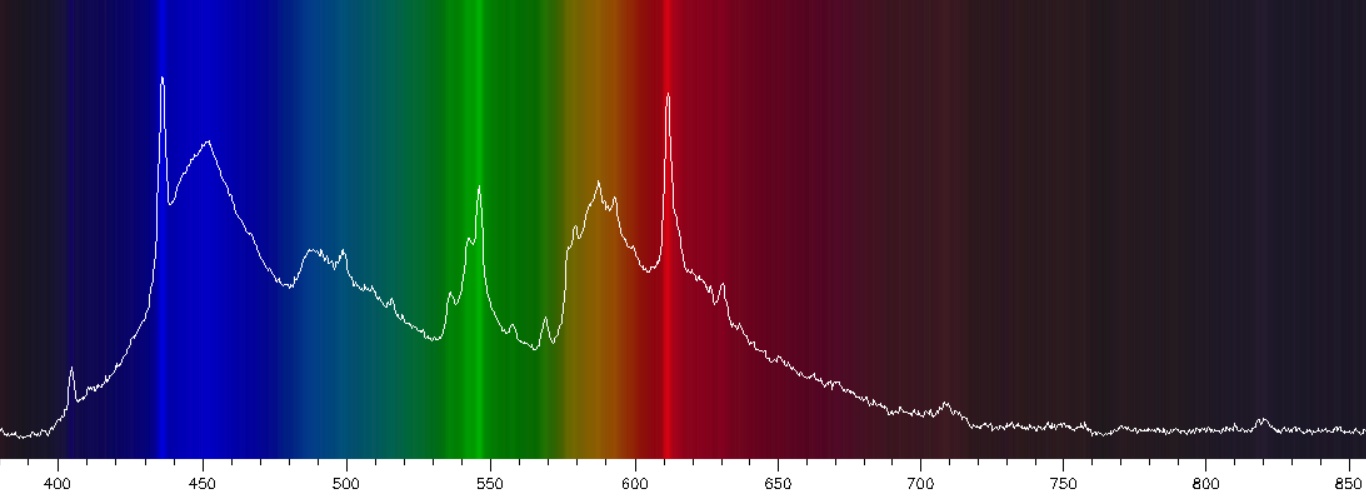 ps.: Die Spektren habe ich mit einer Voll-Spektrum-Modifizierten Canon 60D aufgenommen. D.h. bei der habe ich die sonst vor dem Chip befindlichen UV-IR-Sperrfilter und Biasfilter ausgebaut. Dadurch ist sie bis ins Infrarote empfindlich.