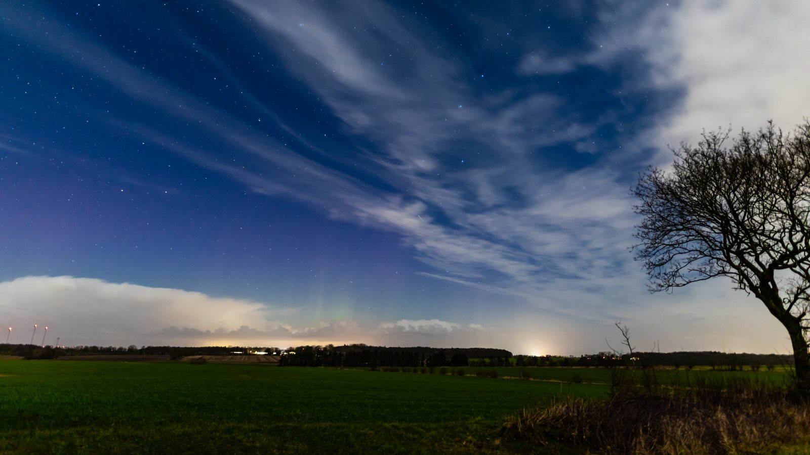 - gegen 20:00 - 20:20 UT unten leicht eingefärbter Grünhorizont… ...aber sehr vage zwischen den Cirren und tiefer Lichtverschmutzungen...