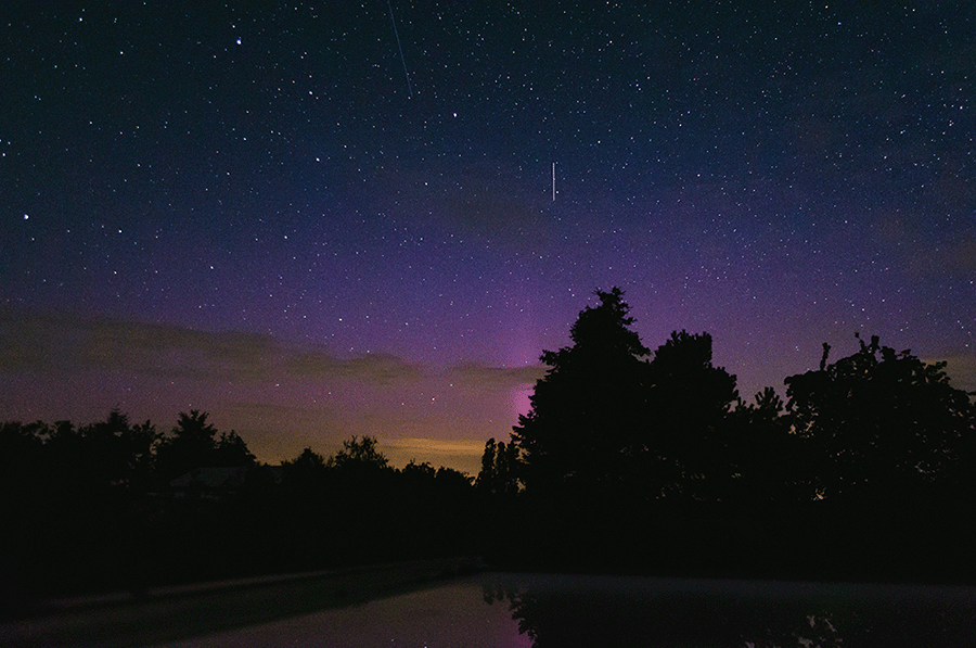 Später war der Himmel Richtung Nord nahezu wolkenfrei. Mein Ziel war ursprünglich die Beobachtung um 01:00 MESZ abzubrechen, doch am DSCOVR lag der Bz zeitweise bei -13 nT und ich vermutete einen weiteren Substorm bis 01:30 MESZ.