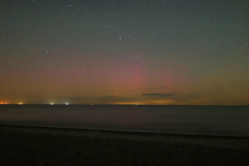 ich war gestern zuerst an einem neuen Beobachtungsplatz, den ich schon länger im Auge hatte, da die Lichtverschmutzung an meinem bisherigen Plätzen doch erheblich zugenommen hat ( denke es liegt größtenteils an der Umstellung auf LED). PL konnte ich dort aber nicht ausmachen. Ich wollte danach eigentlich nach Hause, aber ich bin dann doch noch mal nach Oldenburg gefahren um Vergleichsbilder von beiden Orten zu haben (ähnliche Wetter/ Lichtverhältnisse). Mit Polarlicht habe ich überhaupt nicht mehr gerechnet. Doch ca. fünf Minuten nach meiner Ankunft, war da ein sehr schwacher Beamer fotografisch zu erkennen. Das Ganze dauerte auch nur drei Minuten und danach konnte ich nichts mehr erkennen. Die Lichtglocken von Wilhelmshaven/Bremerhaven haben das meiste PL"gefressen". Ein Blick hier im Forum bestätigte meine Sichtung, dank Hennings Meldung.