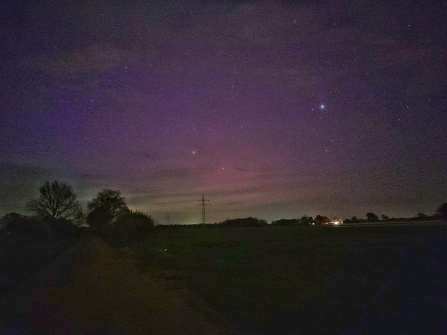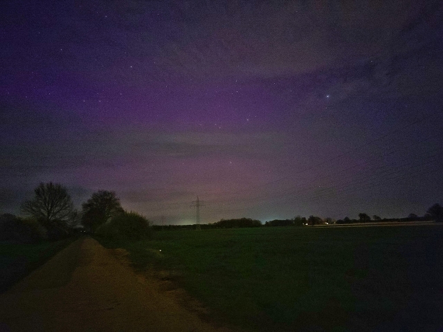 ich hatte ebenfalls das große Glück am Abend des 23.04. gegen 22:30 Uhr bei Gifhorn Hoitlingen und frühmorgens am 24.04. zwischen 3:30 Uhr und 4:00 Uhr bei Wolfsburg Ehmen und Gifhorn Wettmershagen leicht visuelle Polarlichter zu beobachten. Ich sah grünlichen Schimmer im Himmel und zwischen den Wolken, also habe ich mein Smartphone samt Stativ aufgestellt und auf gut Glück einige Langzeitbelichtungen gemacht. Hier sind die Ergebnisse. Ich freue mich riesig in den Genuss gekommen zu sein, einmal Polarlichter gesehen zu haben. Was für ein Erlebnis.