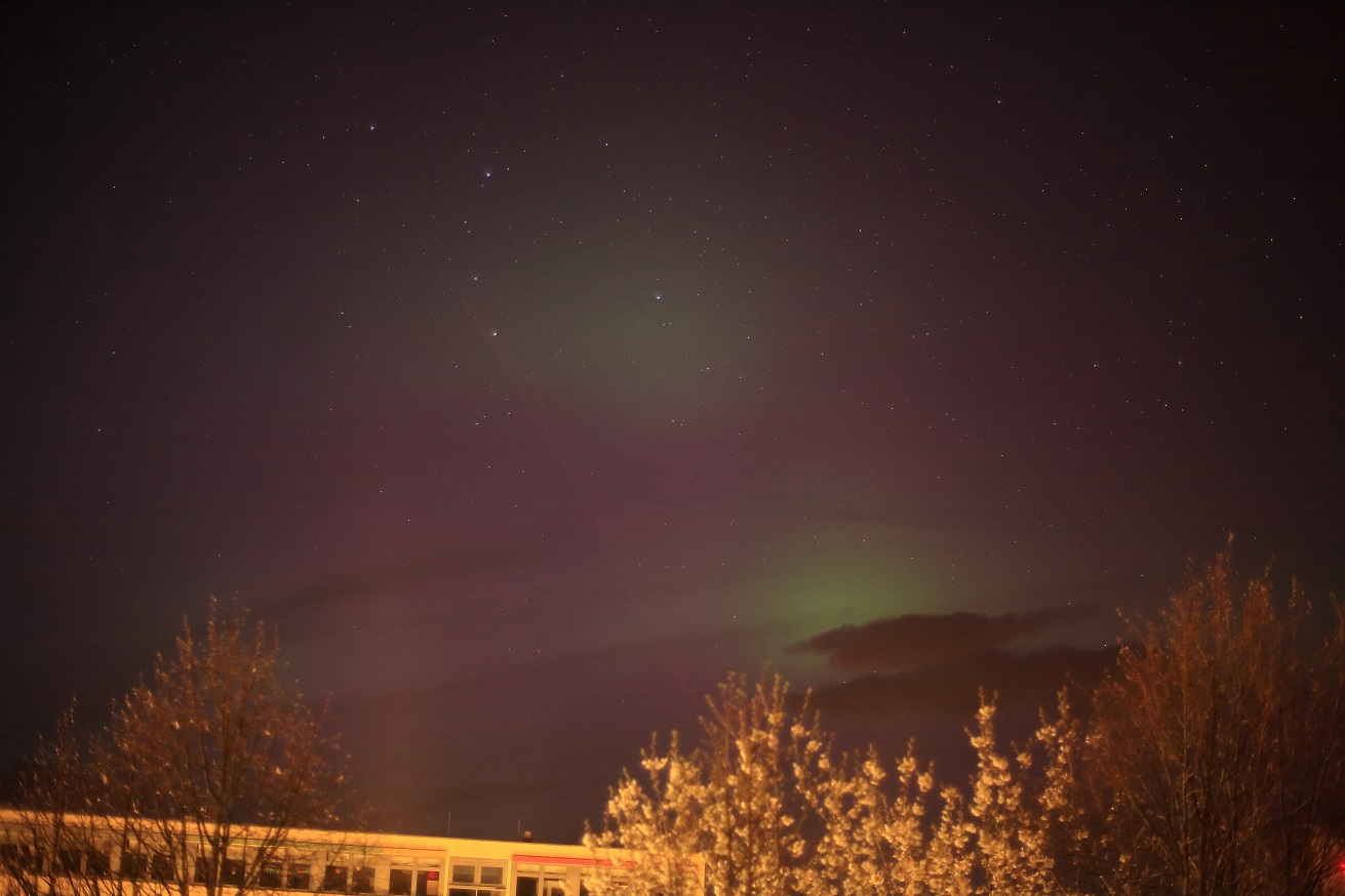 Kommentar: Bereits in der frühen Dämmerung gab es rotes fotografisches Polarlicht. Ab 21:30 Uhr schwach visuelles Polarlicht und zum Höhepunkt deutlich visuelles Polarlicht. Ab 22:35 Uhr war kein Polarlicht mehr aufgrund von Wolken zu sehen.