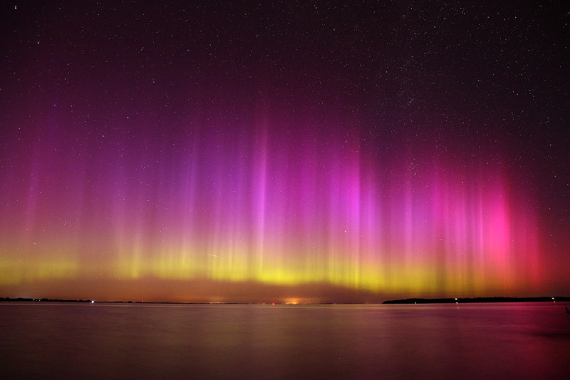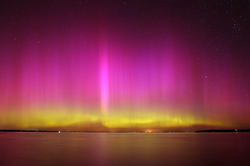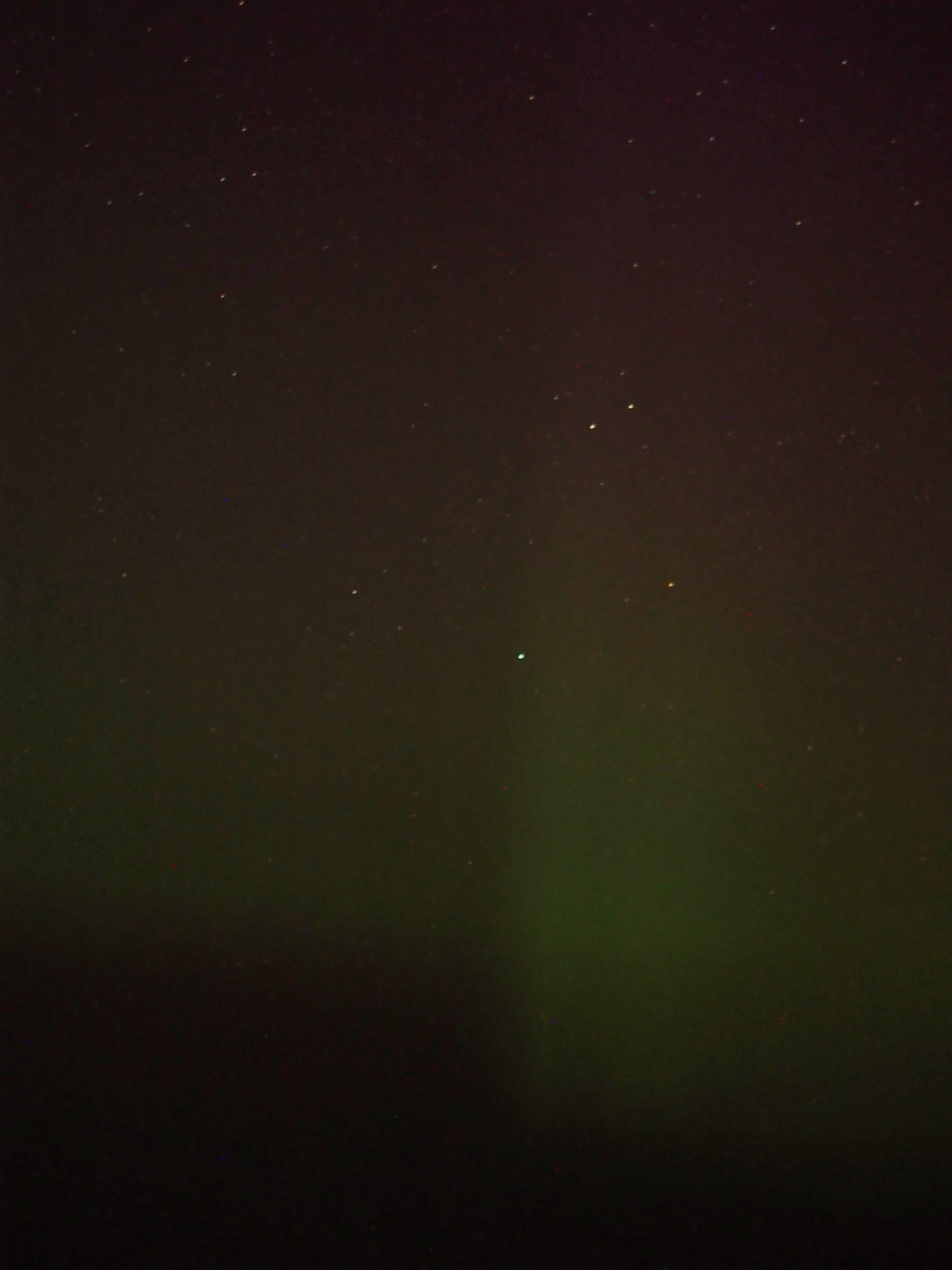 am Anfang heller schein am Hotrizont, auf der Kamera direkt Grün.