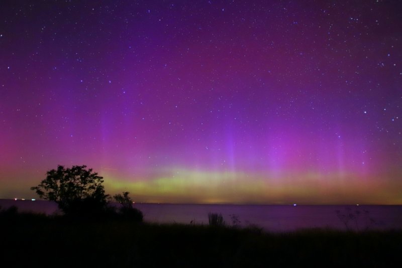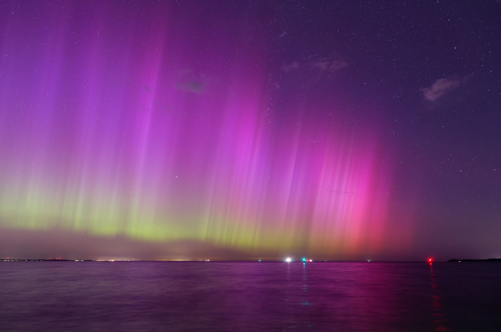 Nachdem ich schon recht früh einen grünlichen Übergang vom Abendrot zum Nachthimmel mit bloßem Auge wahrnahm aber hier im Forum eigentlich keine Bestätigung erhielt, dass momentan grün sichtbar sei, habe ich doch eher daran gezweifelt, dass das, was ich auf dem Display sah, wirklich zu sehen ist und die Kamera vom Handy einfach nicht mit dem Licht klar kommt.... Gegen 23 Uhr wurde es dann aber violett auf dem Bildschirm aber auch da war ich mir dann nicht sicher ob es nicht doch Lichtverschmutzung durch die Windräder ist. Das Violett sah so undynamisch aus und eigentlich wollte ich dann schon rein gehen.... Perseiden wollten sich irgendwie auch nicht so zeigen als plötzlich rechts von mir helle Strahlen in die Höhe schossen. Ich war irritiert und dachte, dass auf dem NOK ein Schiff Beleuchtung angeschalten hatte, da ich so weit im Nordosten nicht mehr mit PL gerechnet habe.... Ein Testbild mit der Kamera zeigte aber dann ein Farbspektrum, welches mich erst einmal staunend in die Richtung blicken ließ.... Und dann ging es los.... Die Strahlen wurden immer heller, teils konnte man den rötlichen Schimmer mit bloßem Auge erkennen. Es wanderte immer weiter in Richtung Norden und Nordwesten. Plötzlich war der komplette Horizont hell. Ich kam mir vor wie im 180 Grad Kino.... Es gab deutliche Beamer und gleichzeitig aber auch einfach helle Flächen und das über einen sehr langen Zeitraum.... Ach ich könnte noch so viel schreiben, was mir alles durch den Kopf geht...