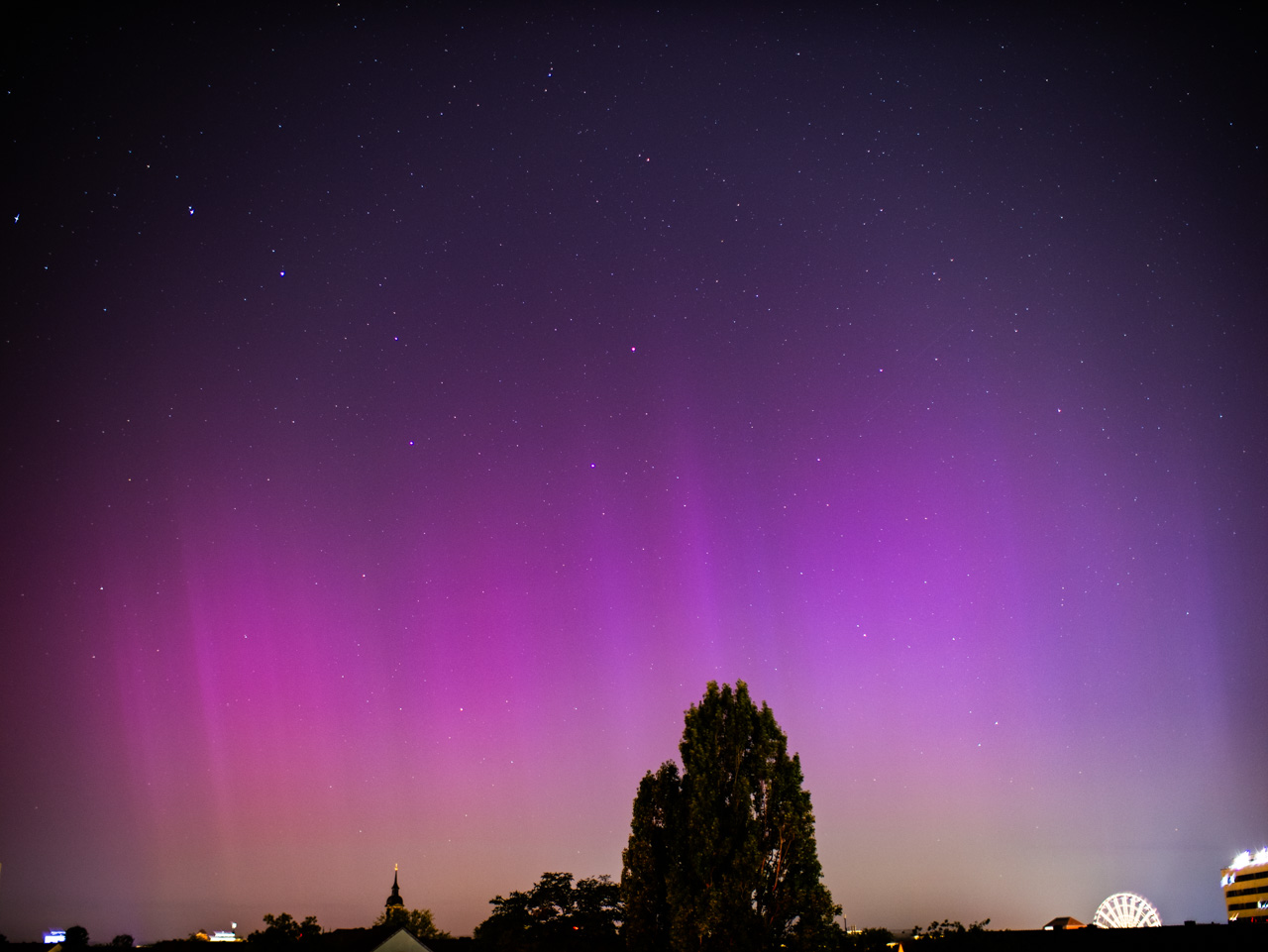Im oberösterreichischen Innviertel am Ort 48.3°N 13.2°O war das Polarlicht nach dem nächtlichen Gewitter und abziehenden Restwolken fotografisch nachweisbar. Mit freiem Auge konnte ich es nicht sehen.