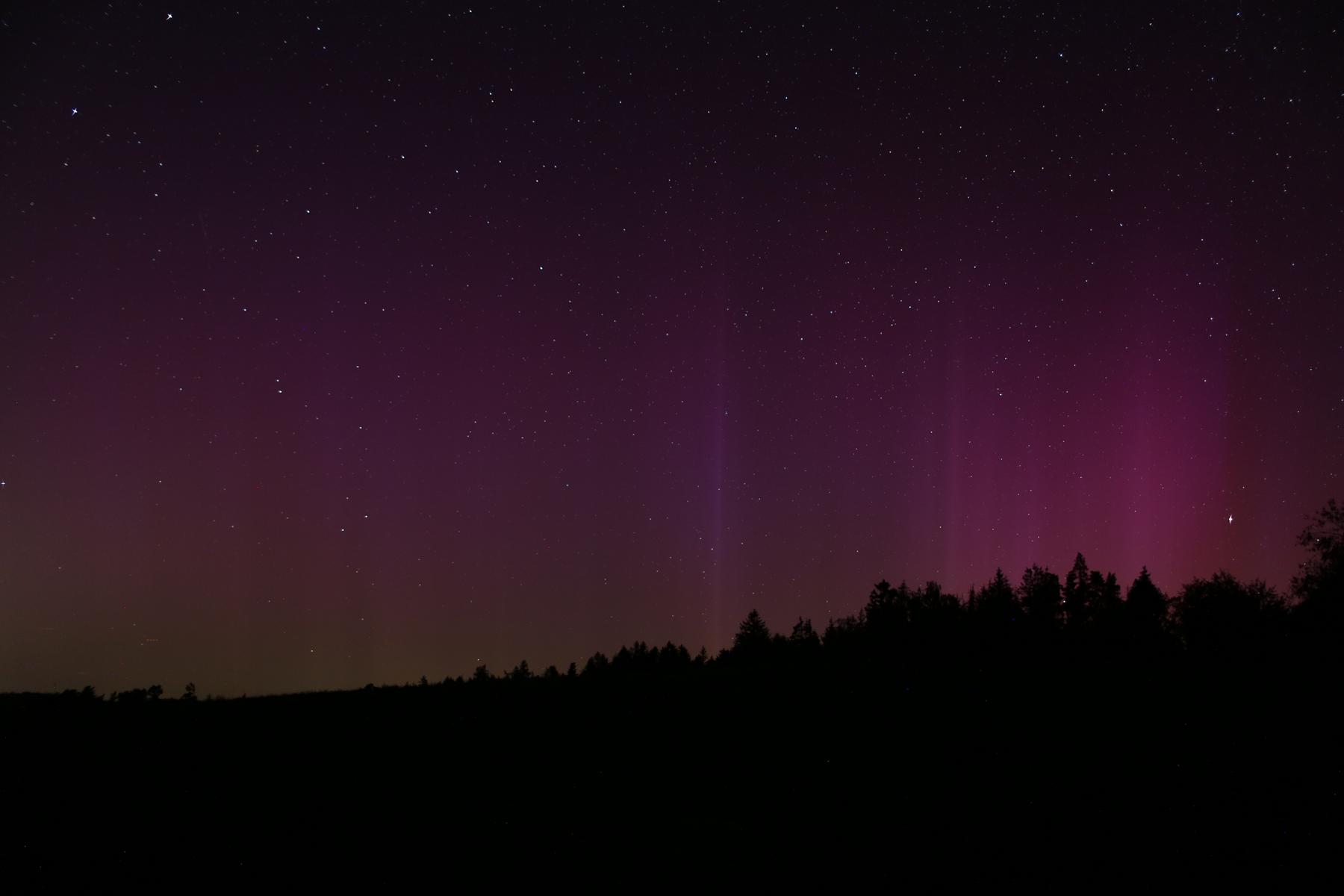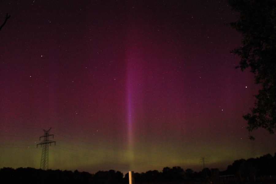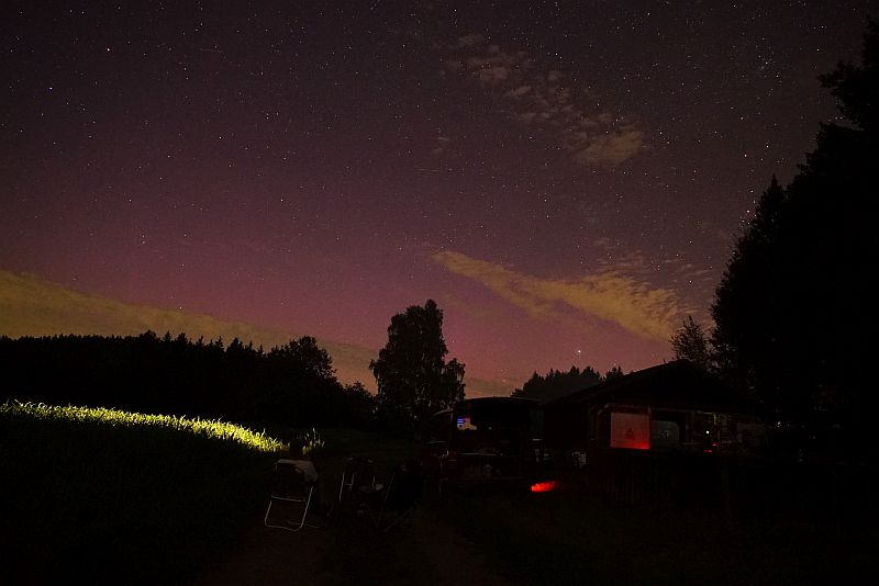 plötzlich und entgegen dem wetterradar riss es im norden auf und eine seeehr schwache rotfärbung machte sich bemerkbar. dann tanzten ein paar schwache beamer, die stärker wurden und schließlich verebbten diese wieder, aber das schwache rot blieb - aber wir nicht mehr viel länger, weil einige am nächsten tag arbeiten mussten und wir eigentlich nix dolles mehr erwarteten.