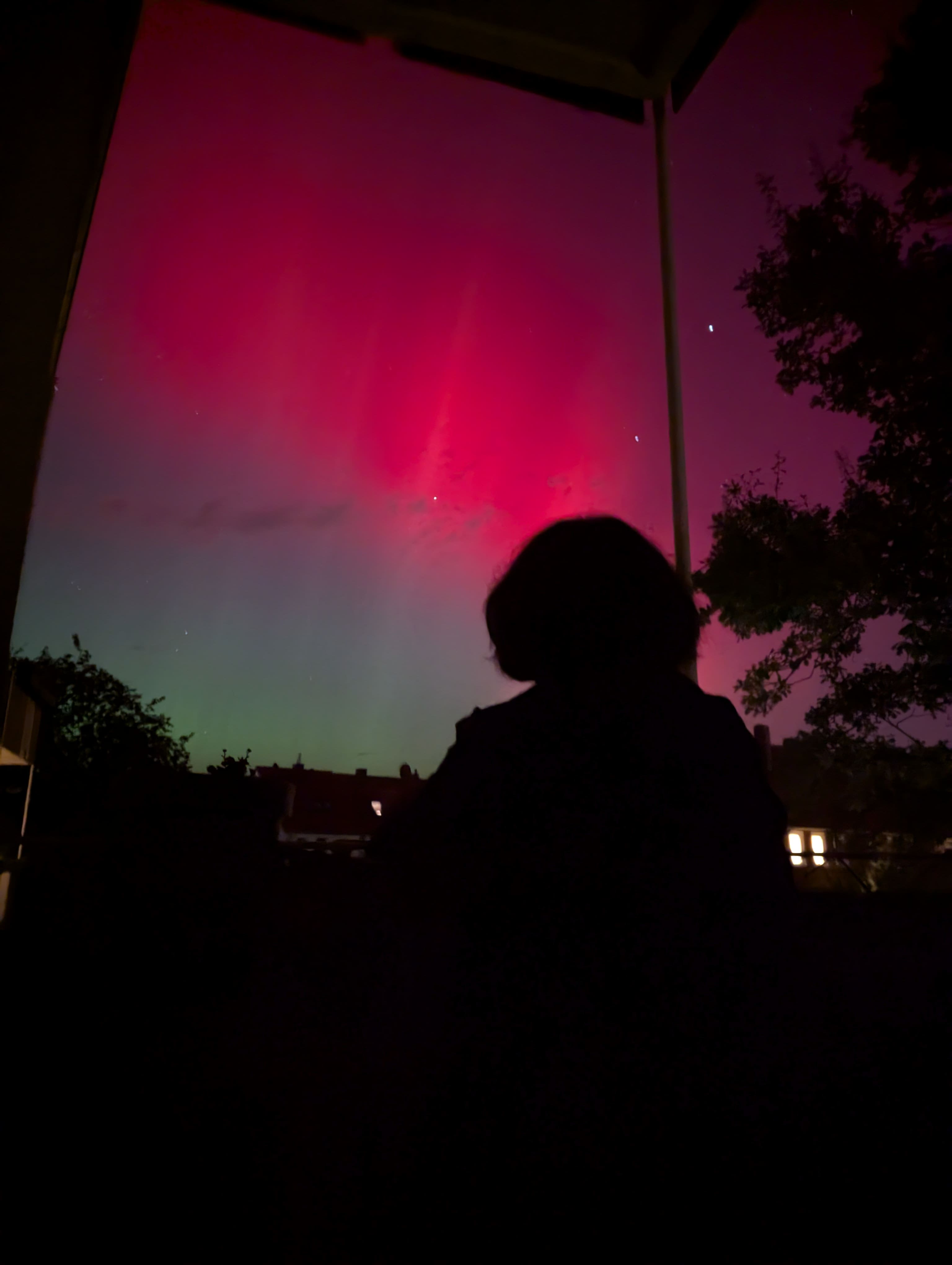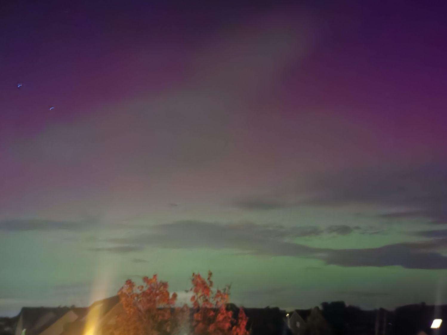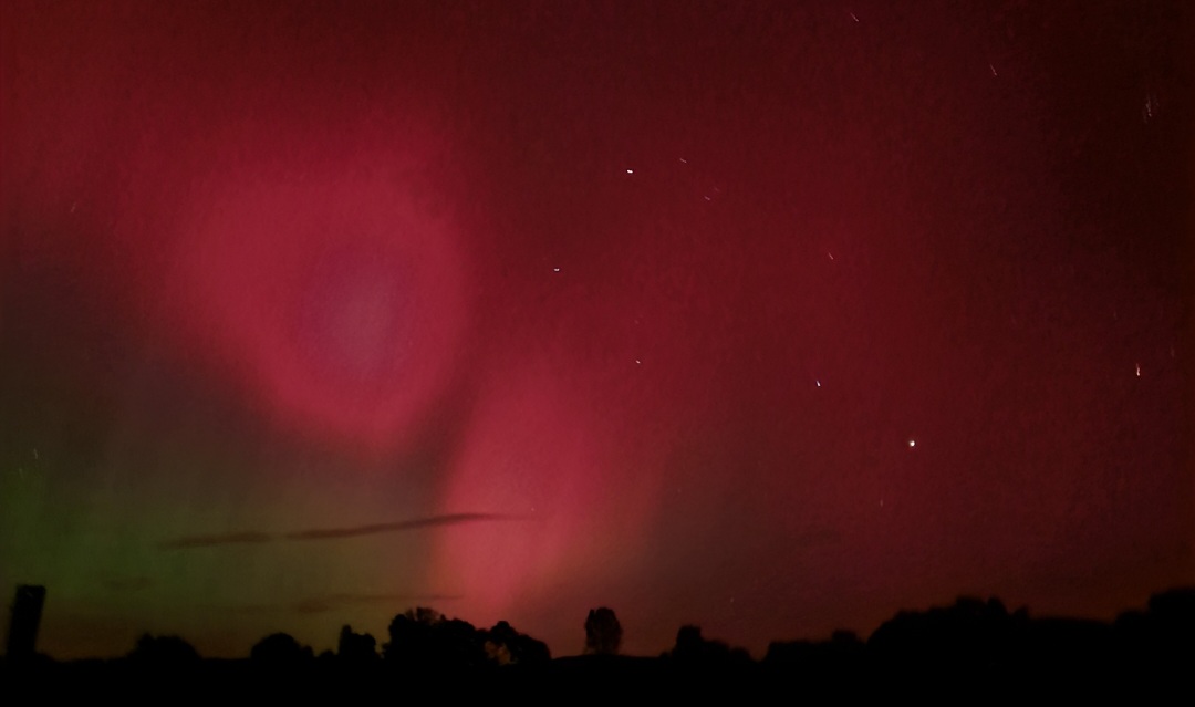 Abermals durften wir im Süden Polarlichter erleben. Das Foto mit dem iPhone 15 nahe Tübingen um 22:26 Uhr (MESZ) geschossen