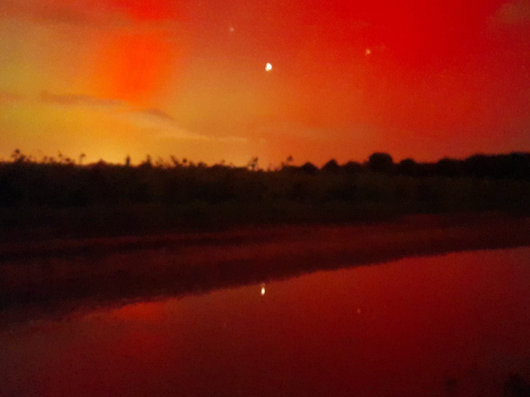 Zwischen 22:40 und 23:05 Uhr in 37586 Dassel deutlich visuelles Polarlicht in rot - entsprechend beeindruckend war dann auch das fotografische.